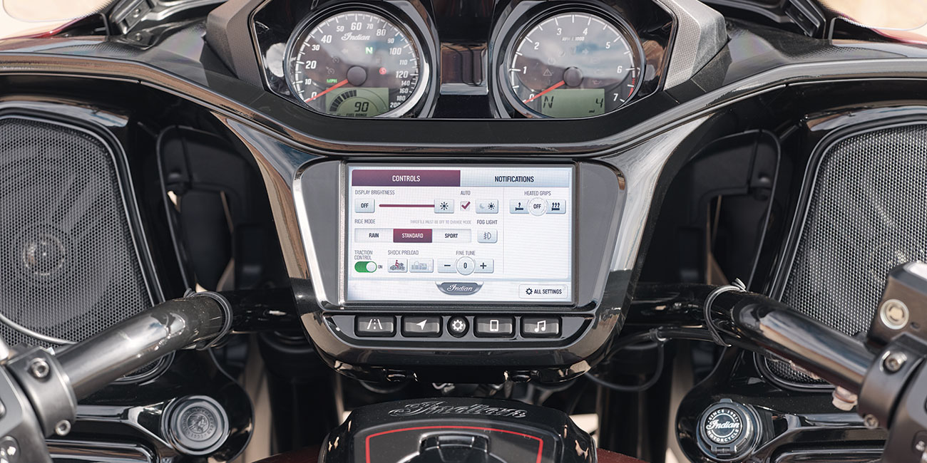 A partir de CHF 24'490L’Indian Challenger Édition 125e Anniversaire met l’accent sur la performance et la maîtrise. Sa tête de fourche montée sur le chassis, ses finitions noires et son moteur PowerPlus 112 ci à refroidissement liquide sont accompagnés de détails peints à la main et de badges spécifiques du 125e anniversaire.