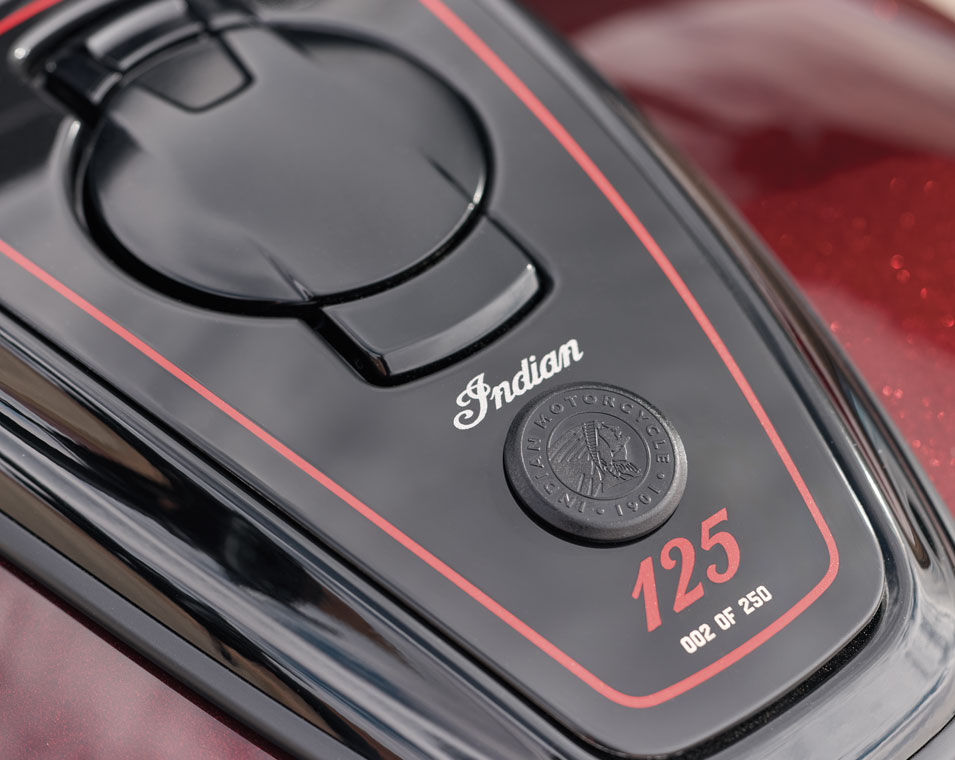 La Scout Bobber Édition 125e Anniversaire va à l’essentiel. Sa position de conduite affirmée et son design bobber classique sont mis en valeur par des détails peints à la main avec soin, ainsi que des badges spécifiques du 125e anniversaire.